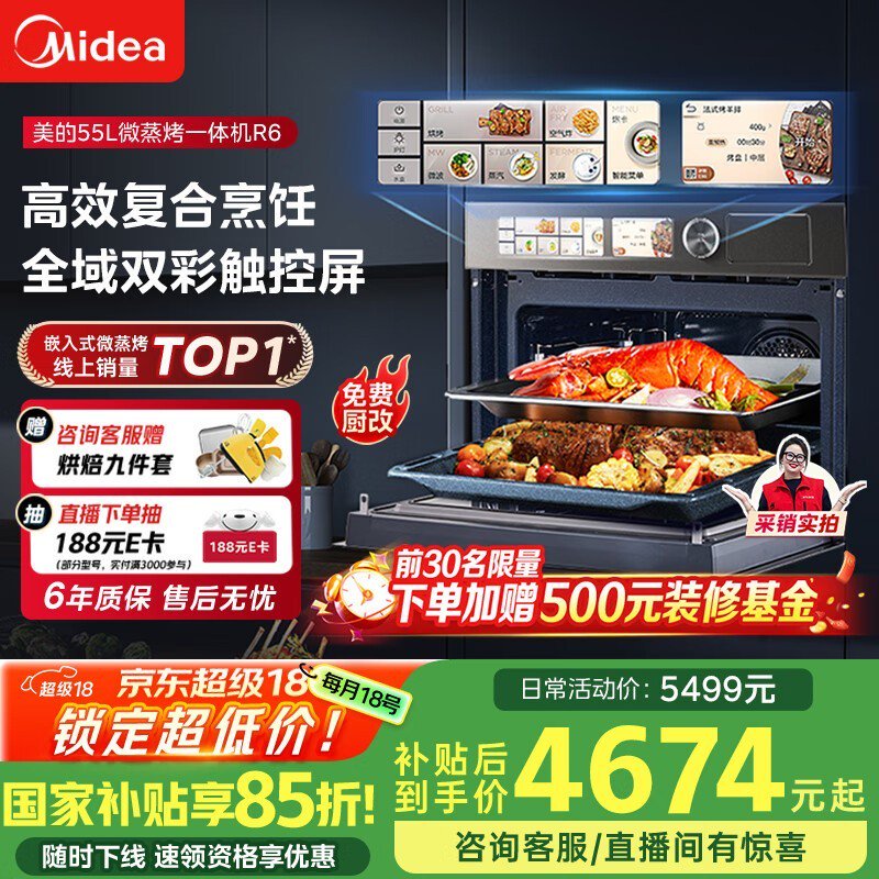 美的GR6嵌入式微蒸烤一体机50L,多功能智能厨房神器